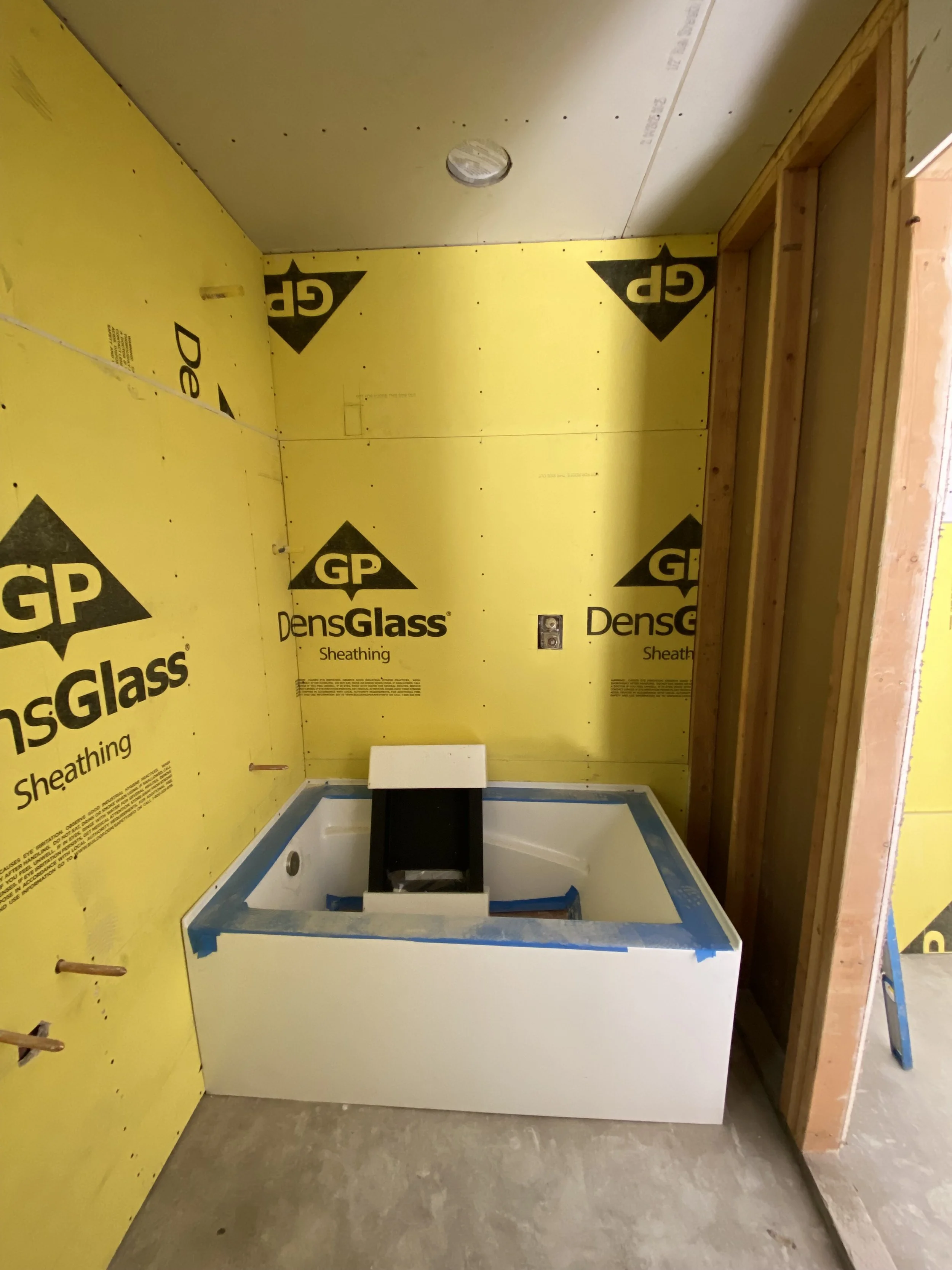 Stucco was just put on. Notice the high quality Anlin windows, we get a great price on those.